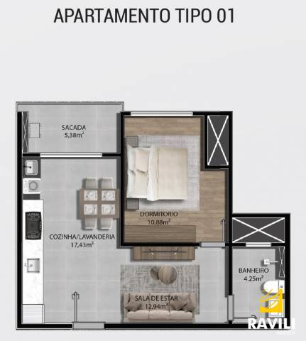 > Apartamentos com 1 dormitório;
